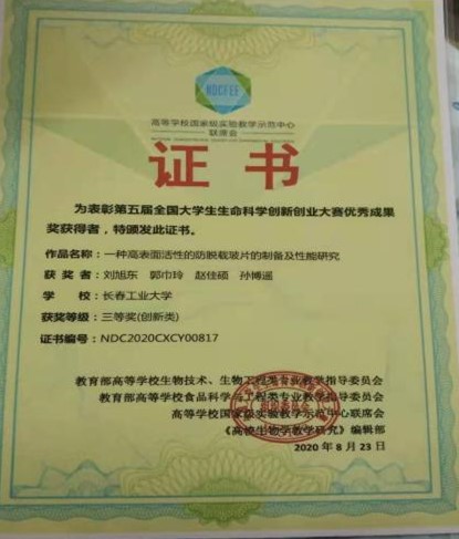 担起时代使命,用奋斗实现青春梦想。学好专业知识,掌握扎实本领,在学习方面,认真取得专业课成绩第一名,学习刻苦,成绩优良,积极参与导师科研项目,参加各种学术讲座与竞赛活动,不断充实完善自己,获得硕士研究生一等学业奖学金。积极参与导师课题研究,主动承担任务,不断锻炼、提升自己。在理论知识学习及课题研究之余,她还积极参加公司和公司的讲座活动以及课题组组织的各项实践竞赛活动并获奖,不断开拓视野,听取不同的思想、观点,吸取知识。获得第五届全国老员工生命科学创新创业大赛三等奖。