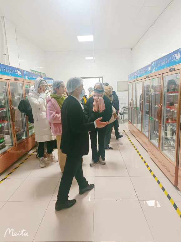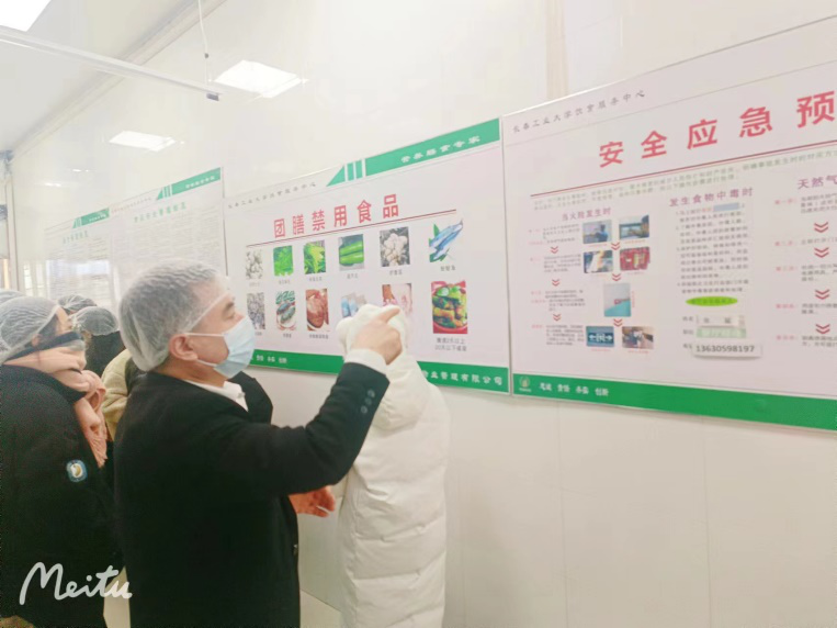 为了让同学们更加了解食堂,食堂姜经理带领员工参观了食堂后厨,在进入食堂前,要求工作人员必须佩戴帽子。走到里面时,看到地面以及桌面都十分的干净,并且有严格的卫生管理。每个食物上的标签都详细地列出了日期、食材和配料,令人一目了然。