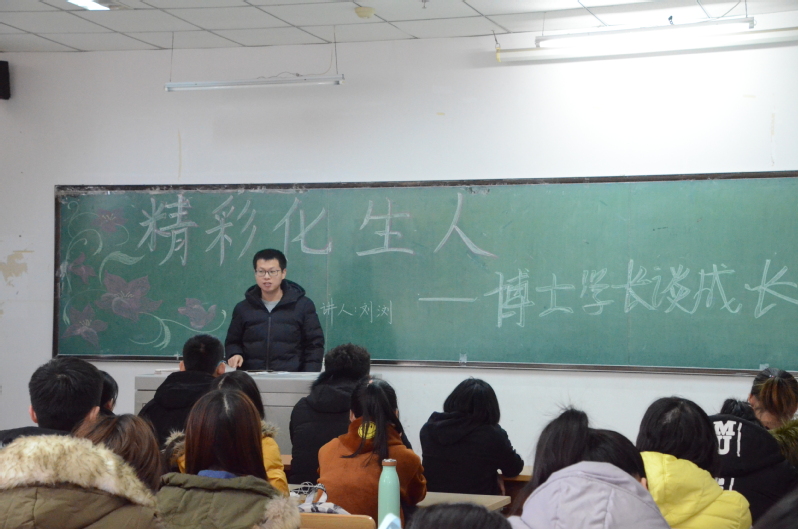 化生团委讯(通讯员 陈鑫 )2018年12月8日,云顶7610线路检测邀请了博士生刘浏在南湖科研楼2604教室开展了“精彩化生人”博士学长谈成长宣讲活动。