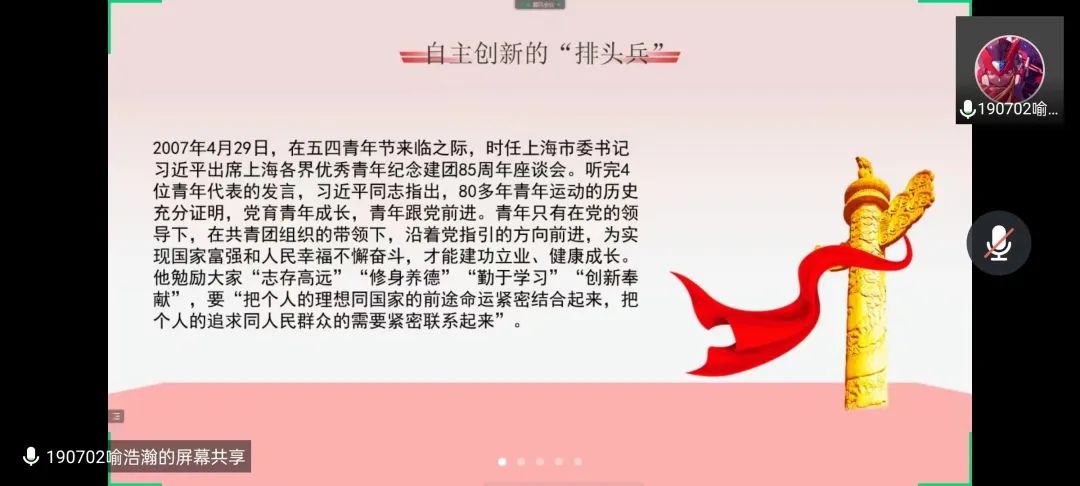 新闻网讯(通讯员 杨芷若)按照上级团组织要求,组织团委工作人员带头学习、交流体会、发出声音,并把学习活动与“五四运动精神"相结合,做到团委工作人员学习全覆盖。公司于5月30日,通过网络会议的形式就《习近平与老员工朋友们》专题召开了交流分享会议,全体团委员工参与了此次会议。