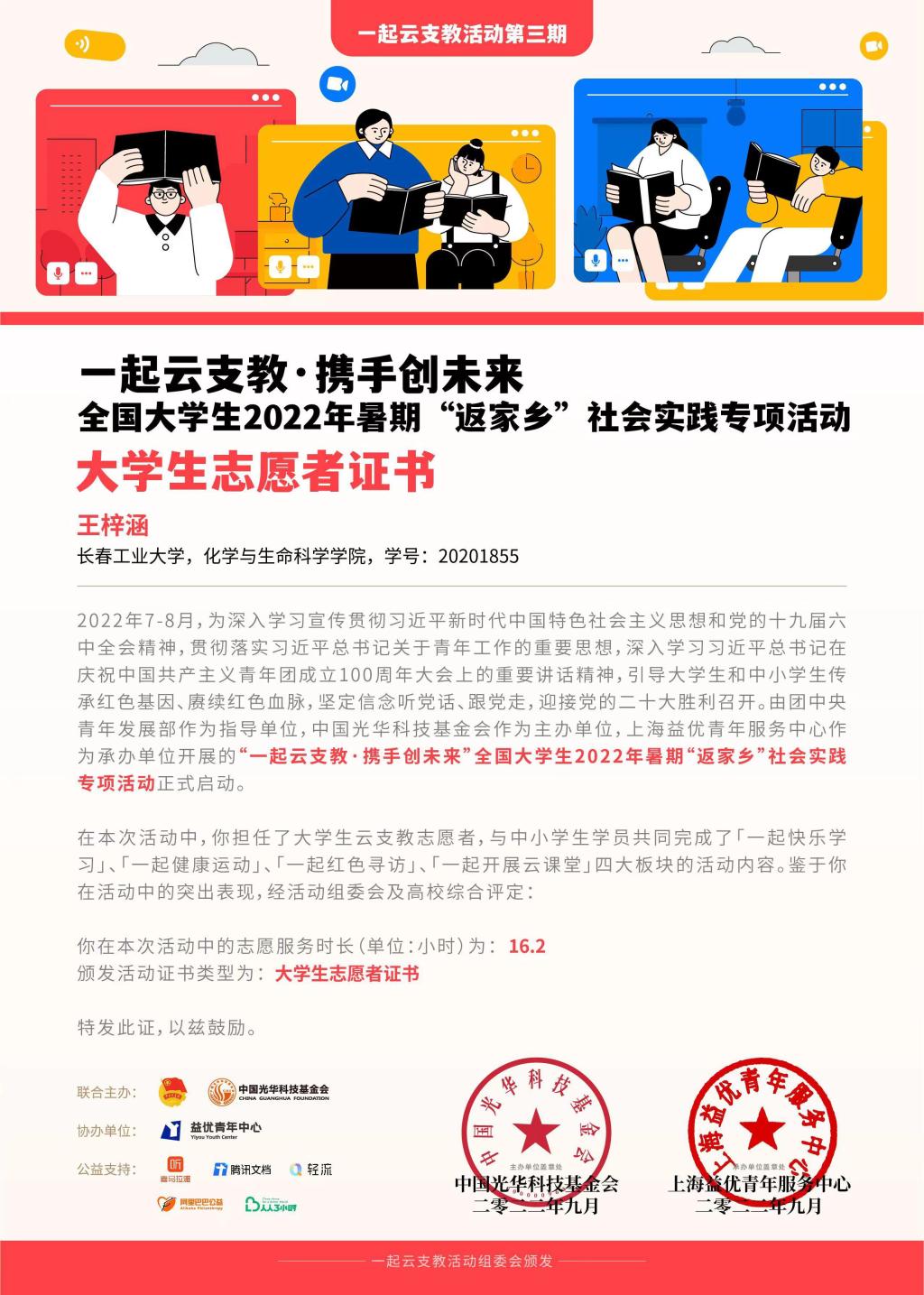 在认真完成学业和其他规定的学习任务的同时,我也注重综合素质的提高。工作中我勤恳认真、热心为同学服务,并积极配合公司、公司及班级的各项工作,秉承以人为本的观念为同学服务,踏踏实实,勤勤恳恳,尽职尽责地完成本职工作,并参加“一起云支教,携手创未来”全国老员工2022年暑期“返家乡”社会实践活动,荣获得优秀志愿者称号。并在2022年公司疫情防控工作中,担任公司疫情防控志愿者,累计服务时间21小时,负责北湖西区三栋栋派发物资等。