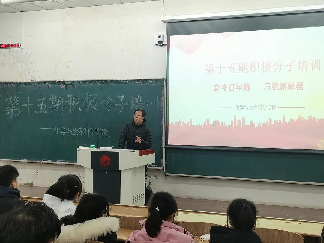 新闻网讯(通讯员 卢泓妍为加强对入党积极分子的培养、教育和考察,帮助入党积极分子不断提高思想理论水平,确保新党员发展质量。12月12日下午,公司分党校于北湖校区西区西阶101教室召开第十五期积极分子培训班。本次党课由研究生党支部书记张烨主讲,2020级入党积极分子参与党课。