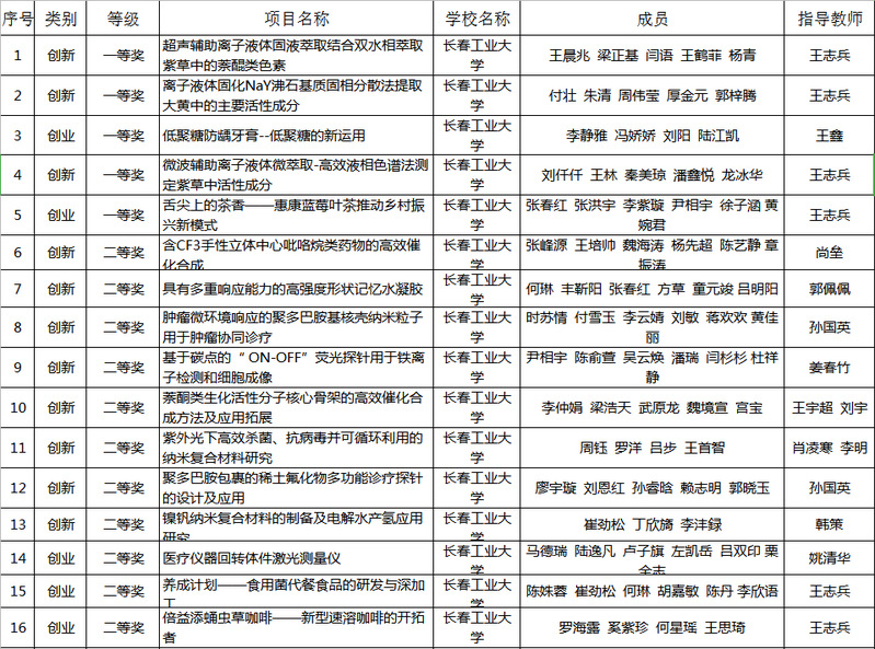 本届大赛自2019年9月启动,历时1年;覆盖全国32个省(直辖市)、自治区的302所高校3687支队伍;14000余名员工参赛;经过资格审查、网络评审、“云”答辩,共评选出员工和指导教师特等奖38项、一等奖395项、二等奖544项、三等奖674项。公司通过层层选拔,激烈的角逐,最终,由公司王志兵老师指导,王晨兆、梁正基等同学完成的《超声辅助离子液体固液萃取结合双水相萃取紫草中的萘醌类色素》项目,付壮、朱清等同学完成的《离子液体固化NaY沸石基质固相分散法提取大黄中的主要活性成分》项目,刘仟仟、王林等同学完成的《微波辅助离子液体微萃取-高效液相色谱法测定紫草中活性成分》项目荣获创新组一等奖;由王志兵老师指导,张春红等同学完成的《舌尖上的茶香——惠康蓝莓叶茶推动乡村振兴新模式》项目,以及由王鑫老师指导,李静雅等同学完成的《低聚糖防龋牙膏--低聚糖的新运用》项目荣获创业组一等奖。