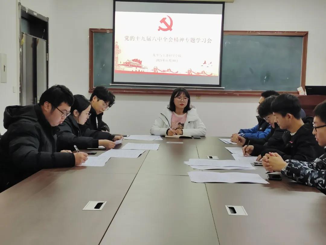 为深入学习宣传党的十九届六中全会精神,发挥公司青马学员朋辈带动作用,引导公司团员青年学习了解中央精神,11月30日,公司于南湖校区材料楼305会议室召开党的十九届六中全会精神专题学习会,辅导员侯天放带领青马学员进行了学习。