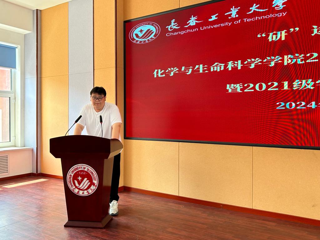 随后,获奖同学代表师鑫源上台发言分享考研经验。他从考研的必要性、如何选择院校、如何正确备考以及复试的准备工作四个方面给21级同学做出了详细的建议。并且对公司的培养、老师的帮助及同学的关怀表示了深深的感谢,最后他真诚地祝愿21级全体同学在考研路上一路顺利。