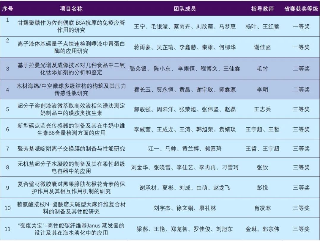 决赛中,同学们沉着冷静、应对自如,充分展现了云顶7610线路检测子的良好形象和综合素质,并在大赛中荣获一等奖2项,省级二等奖2项。其中,由杨叶、王红蕾老师指导的甘露聚糖作为佐剂偶联BSA抗原的免疫应答作用的研究、谢佳涵老师指导的离子液体基碳量子点快速检测唾液中胃蛋白酶的应用研究,在众多团队中脱颖而出,入围即将在宁波举行的全国总决赛。