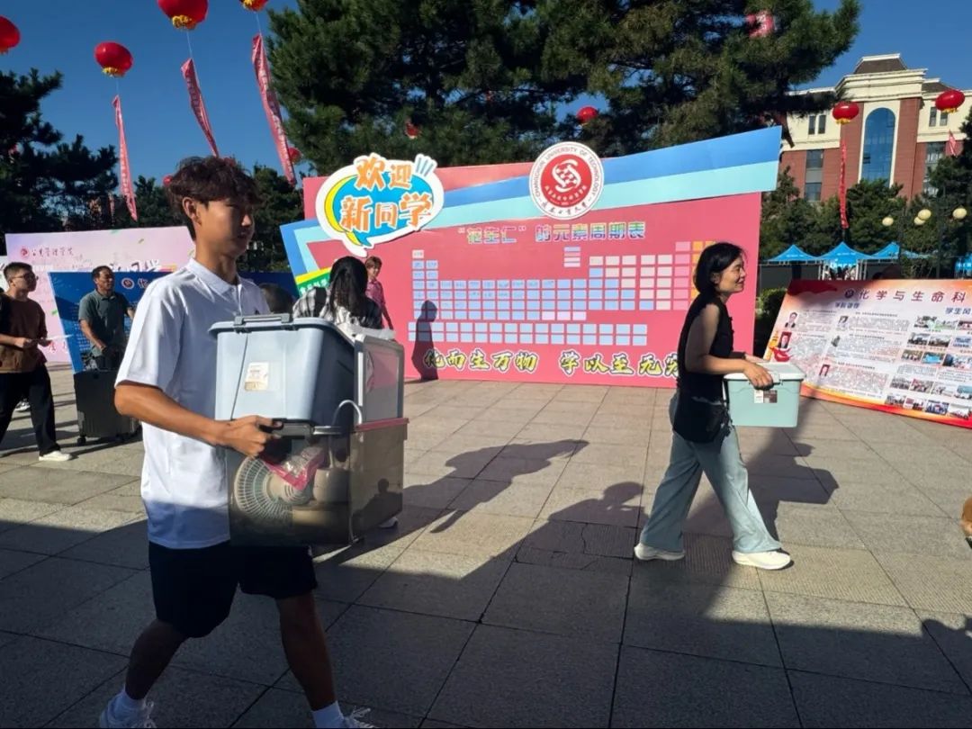 为切实服务同学,化生公司的志愿者们,如同秋日暖阳,温暖着每一位初来乍到的新生。他们身穿统一服装,以满腔的热情和周到的服务,为新生提供行李搬运、路线指引、疑问解答等全方位帮助。这份跨越年级与班级的关怀,让新生们感受到了家的温馨与公司的温暖。