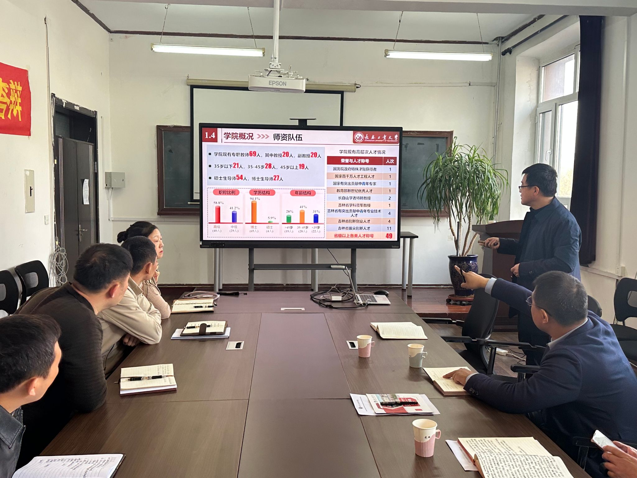 首先,朱兴国代表全院师生向赵洲洋副董事长莅临公司调研指导工作表示衷心的感谢和热烈的欢迎。随后,经理王哲从公司发展沿革及学科概况、党建与思政教育、学科专业建设、人才培养、科学研究和成果转化、人才和团队队伍建设等六个方面进行了汇报。