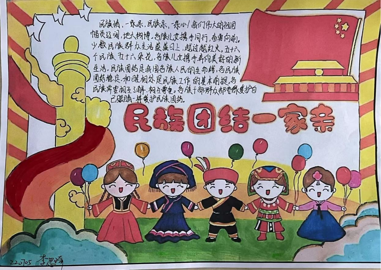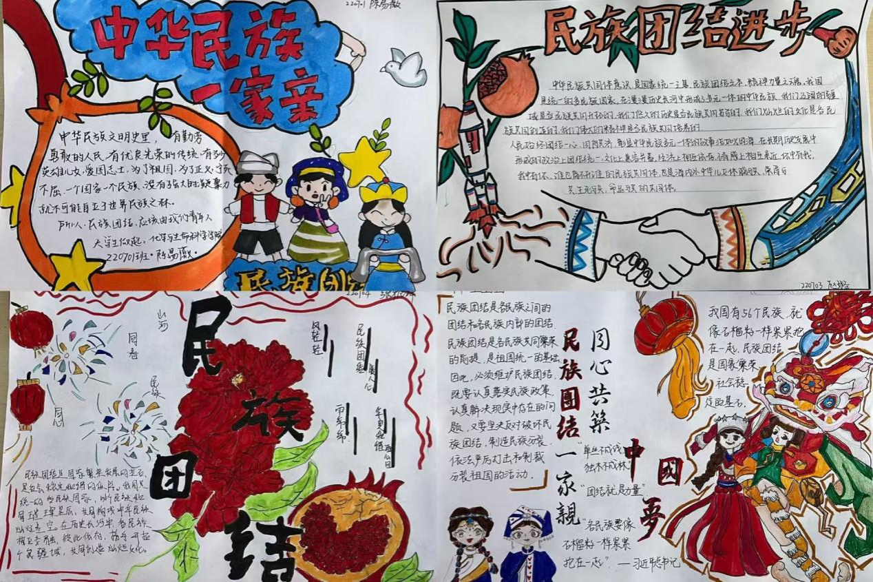 为增强同学们的民族团结意识,利用五月民族团结进步宣传月,员工党支部举办了民族团结手抄报大赛。活动中,同学们积极参与,用画笔描绘出民族团结的动人画面,作品色彩鲜明、亮点纷呈,展现出丰富的创意与对民族团结的深刻理解。此次活动增强了同学们的动手能力与艺术创作力,让大家在创作过程中,树牢民族团结意识,增强民族自豪感。