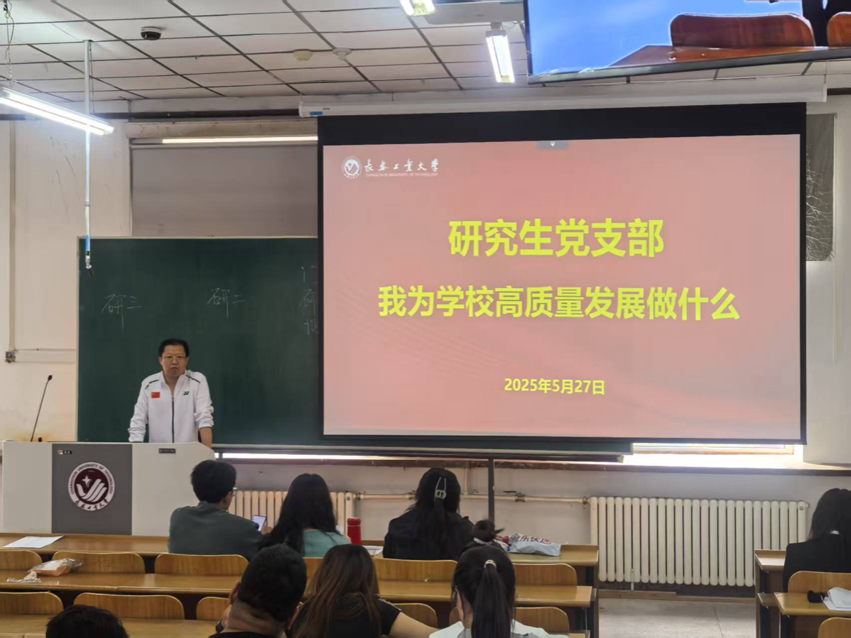 随后,研究生党支部书记张烨详细讲解了从公司发展面临的形势到推进高质量发展的指导思想和目标任务。结合各专业特点,研究生党支部书记张烨强调党员们要认真学习,大力推进一流团队建设,提升学科国际竞争力、强化有组织的科研,服务高水平科技自立自强。同时,鼓励大家加强自身的专业学习和科研项目的研究,不断提高自身专业素养和科研能力。