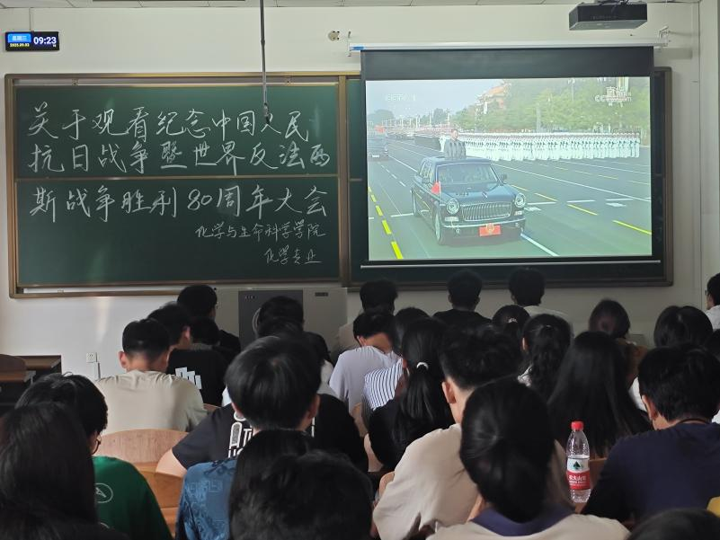 为深入贯彻爱国主义教育,增强师生的民族自豪感与使命感。9月3日,纪念中国人民抗日战争暨世界反法西斯战争胜利80周年大会在北京隆重举行,化学与生命科学公司积极组织全体辅导员、学办教师、员工组织骨干、各团支部通过线上方式观看大会中的阅兵仪式,共同见证这一庄严历史时刻。