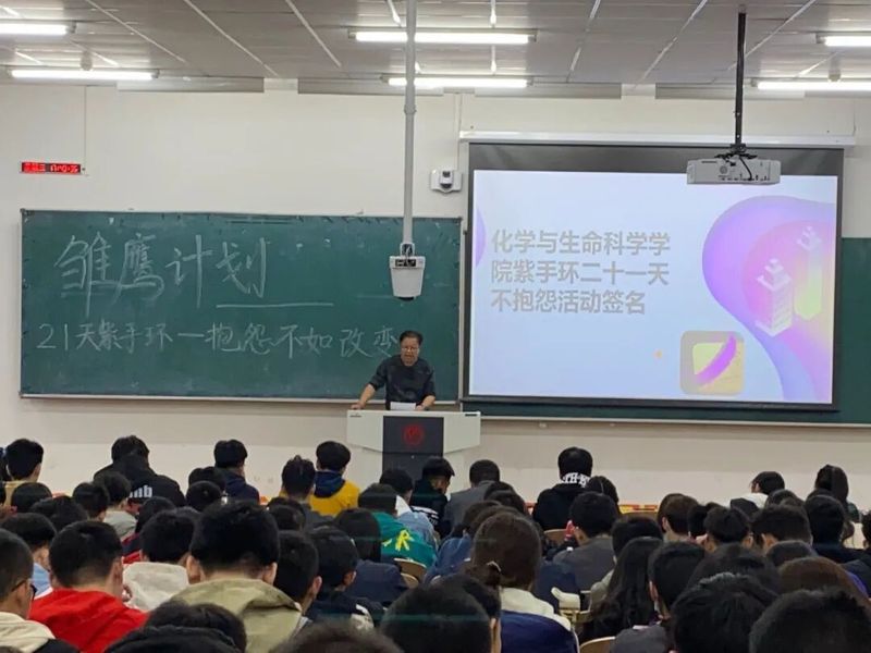 新闻网讯(通讯员林雅晴)为培养2020级新生乐观积极的人生态度,营造阳光向上的生活氛围,以平常心态面对生活挫折。10月21日下午,公司于北湖校区西区西阶201教室开展“21天紫手环—抱怨不如改变”活动,2020级全体新生参与其中。