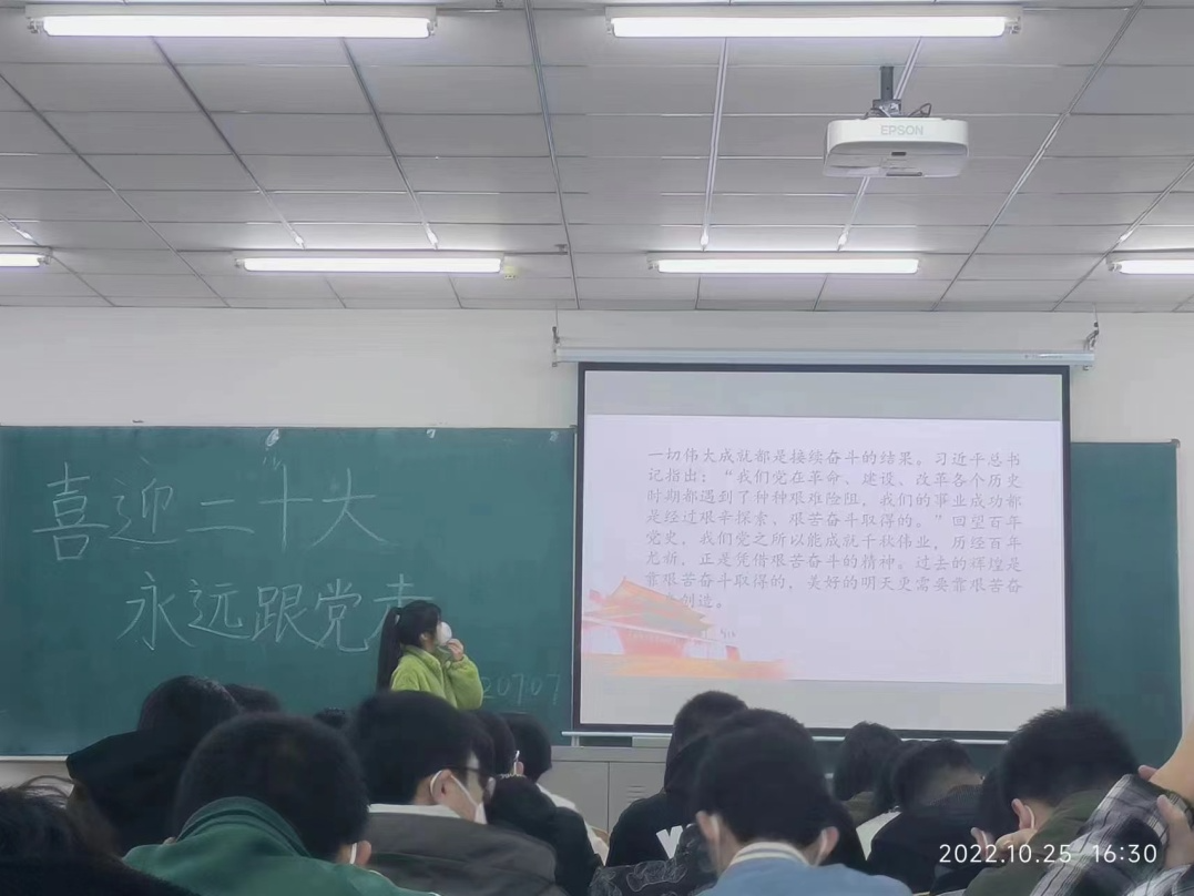 本次会议通过PPT讲解和观看新闻视频等多种形式相结合,向参会同员工动讲述了党的二十大的主要核心内容,深入学习贯彻党的二十大精神实质。会议通过对党的二十大会议要点的介绍,向同学们展示了中国共产党从人民中走来以及中国共产党为人类谋进步,为世界谋大同,并通过提出用党的科学理论武装青年,用党的初心使命感召青年的观点,要求同学们坚持自信自立,树立理想信念,做有理想,敢担当,能吃苦,肯奋斗的新时代好青年。会后同学们纷纷表示要更加深入学习党的二十大要领,树立远大理想,努力提高自身素养,调整好自己的心态,摆正好自己的位置,用所学的知识为实现中华民族伟大复兴贡献青春的力量,让青春在全面建设社会主义现代化国家的火热实践中绽放绚丽之花。