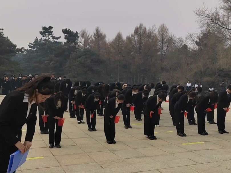本次活动分为四个部分。一是献花悼英烈,同学们肃立在解放纪念碑前,员工代表敬献花束,并且诉说着对先烈的崇敬之情。二是哀思祭忠魂,解放纪念碑前,全体同学向革命烈士默哀一分钟并三鞠躬。三是薪火传使命,员工代表慷慨激昂地为在场同学讲述了革命烈士们的英雄事迹,大家聆听着革命先烈的丰功伟绩,用一段段刻骨铭心的历史进行深刻的精神激励和灵魂洗礼。四是宣誓鼓人心,全体同学们在解放纪念碑前高举右手,以青春的名义宣誓:人民为先,祖国至上;诚实勇敢,自律自强;奋发有为,誓作栋梁;振新中华,再创辉煌。