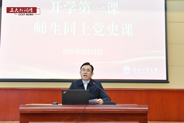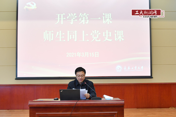 党史课开课之前,党委书记王忠讲话。他强调,今年是中国共产党成立100周年,以习近平同志为核心的党中央立足党的百年新起点、统筹“两个大局”,做出在全党开展党史学习教育的重大决策,恰逢其时,意义深远。上好党史课是认真贯彻落实中央决策部署的重要举措、是引导广大师生明理增信崇德力行的现实需求、是培养担当民族复兴大任时代新人的必然选择。今年是“十四五”开局之年,是全面建设社会主义现代化国家的新起点,也是公司全力加快特色高水平应用研究型大学建设的关键之年。要把党史学习教育同广大同学成长成才、同公司发展建设紧密结合起来,贯穿始终、融入日常、抓在经常,让党史学习教育成为指导员工学习成长、党员干部建功立业的指南针、助推器。