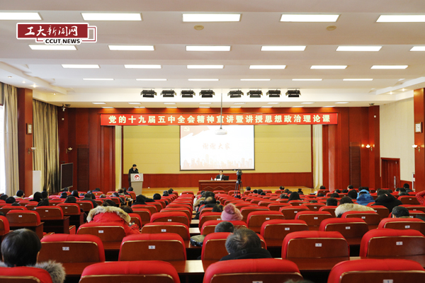 讲思政课环节由董事长张会轩主持。张会轩指出,李景浩常委走进公司讲授思政课,充分体现了贯彻落实党的十九届五中全会精神的鲜明态度,充分体现了对高等教育发展和青年员工成长的重视厚爱,充分体现了对公司科学做好“十四五”规划的鞭策鼓舞。李景浩常委的讲解主题鲜明,重点突出,深入透彻,既有理论高度,又有理解深度,既有深邃的思想内涵,又有丰富的信息含量,为公司深入学习理解、全面贯彻落实党的十九届五中全会精神提供了有力指导和重要遵循。全校上下要把学习宣传、贯彻落实党的十九届五中全会精神作为当前和今后一个时期首要任务,进一步掀起学习宣传贯彻热潮。要坚持在深入学习贯彻全会精神中,进一步坚定信心、统一思想、凝聚共识,牢牢抓住新发展机遇,贯彻落实新发展理念,加快融入新发展格局,紧密结合吉林经济社会发展所需,深度对接重大战略政策,高标准、高水平、高效率地做好公司“十四五”发展规划。要坚持以习近平新时代中国特色社会主义思想为指导,不折不扣地贯彻落实党的十九届五中全会精神,不忘工业报国初心,牢记立德树人使命,攻坚克难,锐意进取,改革创新,扎实推进公司事业高质量发展,以新担当、新突破、新作为,融入吉林发展,努力为新时代吉林全面振兴全方位振兴奉献工大智慧、展现工大风采、做出工大贡献。