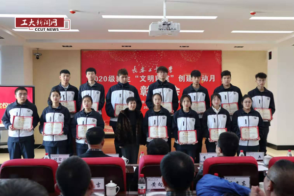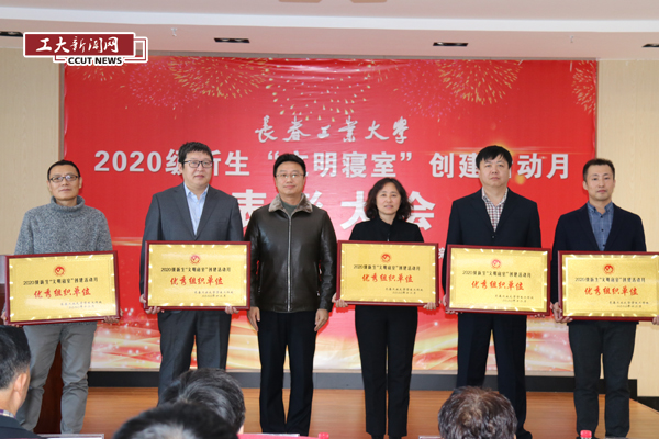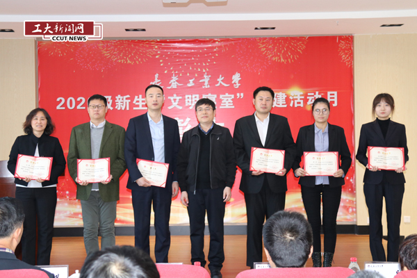 周文军宣读了《关于表彰2020级新生“文明寝室”创建活动先进集体和优秀个人的决定》。化学工程公司等5个单位被评为“文明寝室优秀组织单位”,王颖群等6名同志被评为“优秀指导教师”,北湖西区雅逸苑527等252个寝室被评为“文明寝室”,杨开等252名员工被评为“优秀寝室长”,张博等80名员工被评为“优秀员工个人”。与会领导为受表彰师生代表颁奖。
