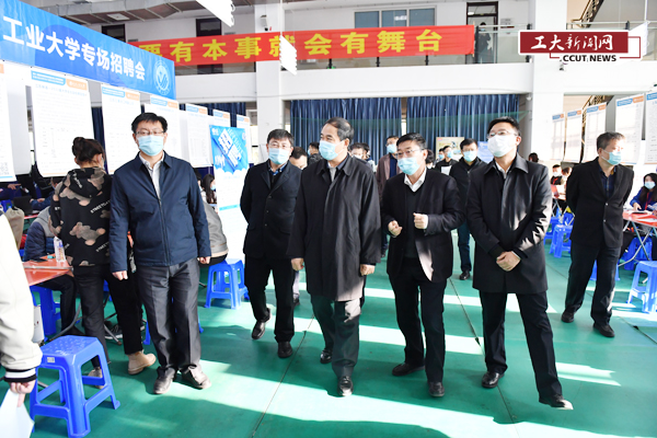 集团领导陪同省教育厅副厅长许世彬视察招聘会现场