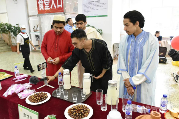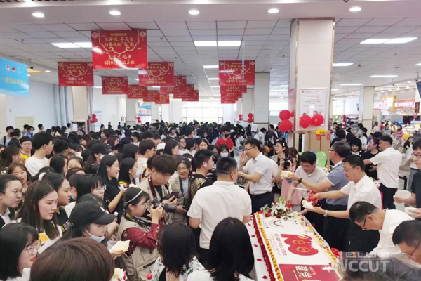现场人头攒动、热闹非凡,公司领导、相关部门、公司负责人和各餐饮公司经理共同切下象征美食文化节开幕的蛋糕。活动中,各承办餐饮公司的厨师们充分展示着自己的拿手绝活,庆建党百年、绿水青山等主题精美雕刻亮相现场,有深受师生喜欢的可乐鸡块、拔丝白果、橙香薯条、土司山药,有独具创意的孔雀开屏、节节高升、花开富贵、吉祥富贵虾,有地方特色的陕西凉皮、川味麻辣香锅、武汉热干面、粤菜蜂巢水蝉,有样式新颖蓝莓慕斯、海苔饭团、寿司、现烤面包等风味面点,还有异域风情土库曼斯坦的馕、孟加拉国的咖喱鸡腿饭、摩洛哥的枣夹核桃、哈萨克斯坦的风味炒饭,大家围绕着琳琅满目、香飘四溢的特色美食尽情的选取,欢快的气氛弥漫了整个校园。