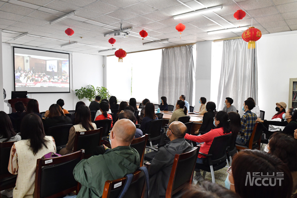 广大师生在会议室、教室通过网络集中收看直播