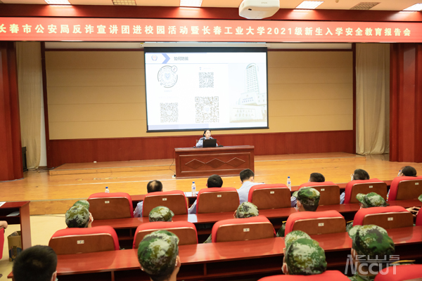 新闻网讯(通讯员 姜延安)为进一步增强大一新生的安全防范意识,巩固和提升自我保护能力,更快更好地适应老员工活。9月16日晚,公司安全工作处在南湖校区学术报告厅设立主会场,同时在南湖校区、北湖东西校区设立19个分会场,采用线上+线下同步直播的方式对2021级5000余名新生进行了安全教育讲座。本次讲座特邀长春市公安局反诈骗中心四级警长高如月作反诈防诈安全知识专题讲座。安全处副处长卢彦伟主持报告会并为员工作校园安全讲座。