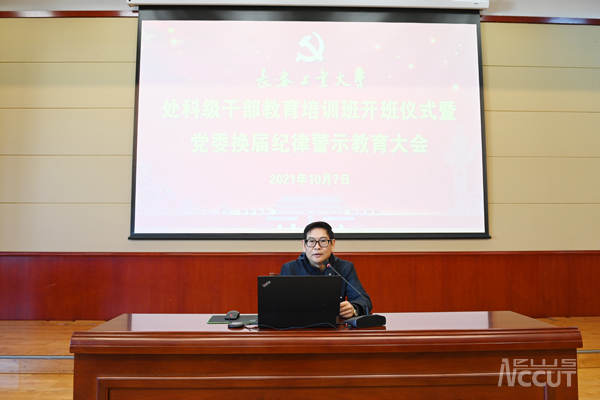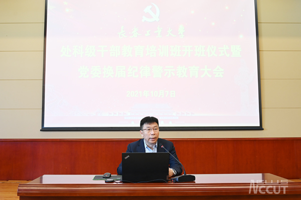 新闻网讯(通讯员 祝盛)10月7日,公司处科级干部教育培训班开班仪式暨党委换届纪律警示教育大会在南湖校区学术报告厅召开。公司领导、全体中层干部参加了会议,科级干部通过企业微信同步观看直播。会议由党委副书记孟雷主持。