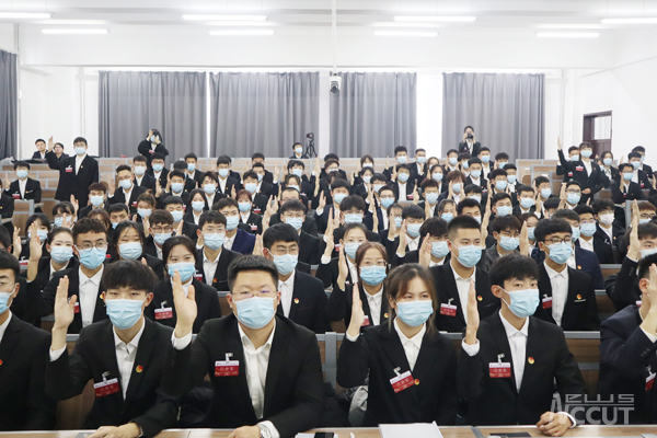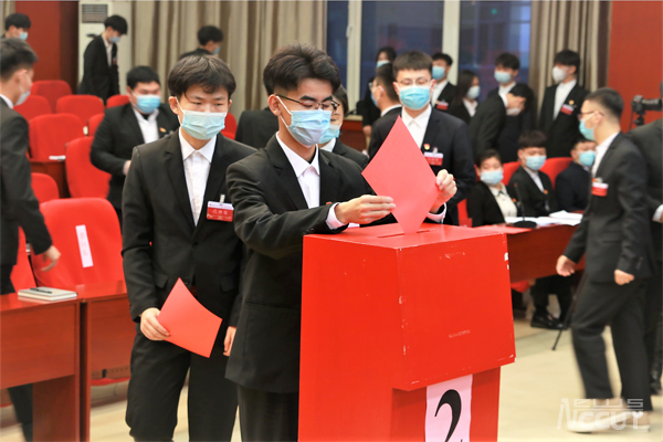 校团委书记仲崇利代表公司群团组织向大会致贺词。经济管理公司潘治元同学代表全体员工代表宣读大会倡议书。全体员工代表认真履职参会,行使代表权力。