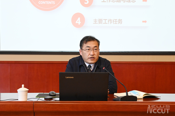 副董事长金光勇以《深化人事与人才制度改革,为特色高水平应用研究型大学建设提供人力支撑》《加强专业内涵建设,创新人才培养模式,全面提升本科公司产品质量》《统筹资源配置,提高资源利用,为特色高水平应用研究型大学建设提供保障》为题,作人事与人才工作、本专科公司产品、资产管理专题报告。