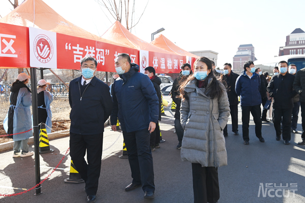 检查组查看核酸检测点搭建情况