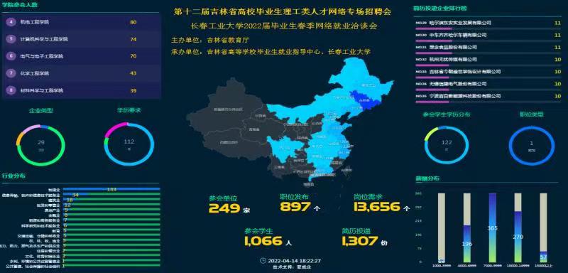 加强市场开发,聚焦岗位供给,就业工作有广度。就业部门充分利用教育部“24365校园招聘服务”、国资委“国聘行动”、共青团“千校万岗”等招聘平台,共享全国招聘信息,拓宽毕业生就业渠道;加强校地、校企合作,深耕在全国20个省份150余个城市建立的线上就业市场,千方百计扩大岗位资源;不断提升就业工作数字化能力,开发集招聘、面试、签约、管理功能于一体的线上就业服务平台,实现就业事务网上“无接触”办理;校园封闭管理以来,做到了线上双选会周周不停办,空中宣讲会天天不断线,先后举办“吉林省理工类人才专场线上招聘会”“2022届毕业生春季空中双选会”和“吉林省重点企业双选会”,与浙江省、长春市、厦门市等省市人社部门合办校地专场线上双选会13场,组织线上专场宣讲会267场,累计提供就业职位信息1万余个,企业招聘岗位超15万岗次,为毕业生提供了充足的选择空间。
