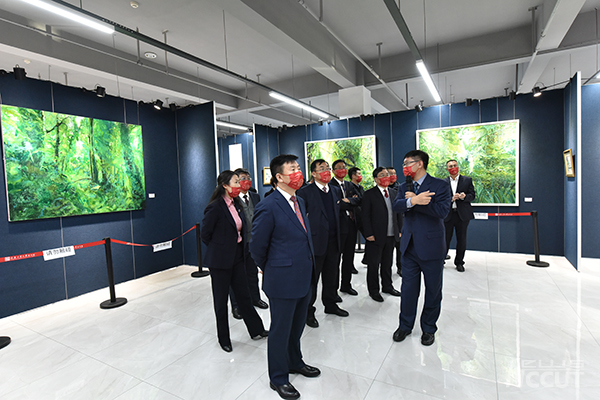 仪式结束后,与会领导、师生一同参观了博厚图书馆和“墨彩抒韵、流光抒情”庆祝建校70周年书画摄影作品展。