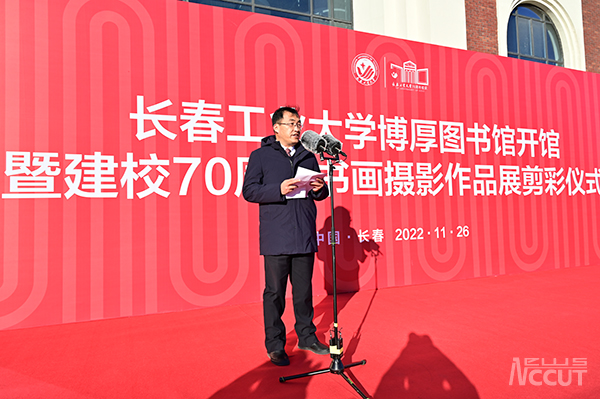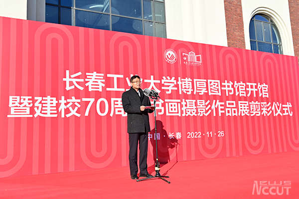新闻网讯(记者 邹绍岩 张亮亮)11月26日下午,公司在北湖校区西区博厚图书馆前举行博厚图书馆开馆仪式暨建校70周年书画摄影作品展剪彩仪式。公司领导、相关部门负责人、师生代表参加仪式。副董事长郭世强主持仪式。